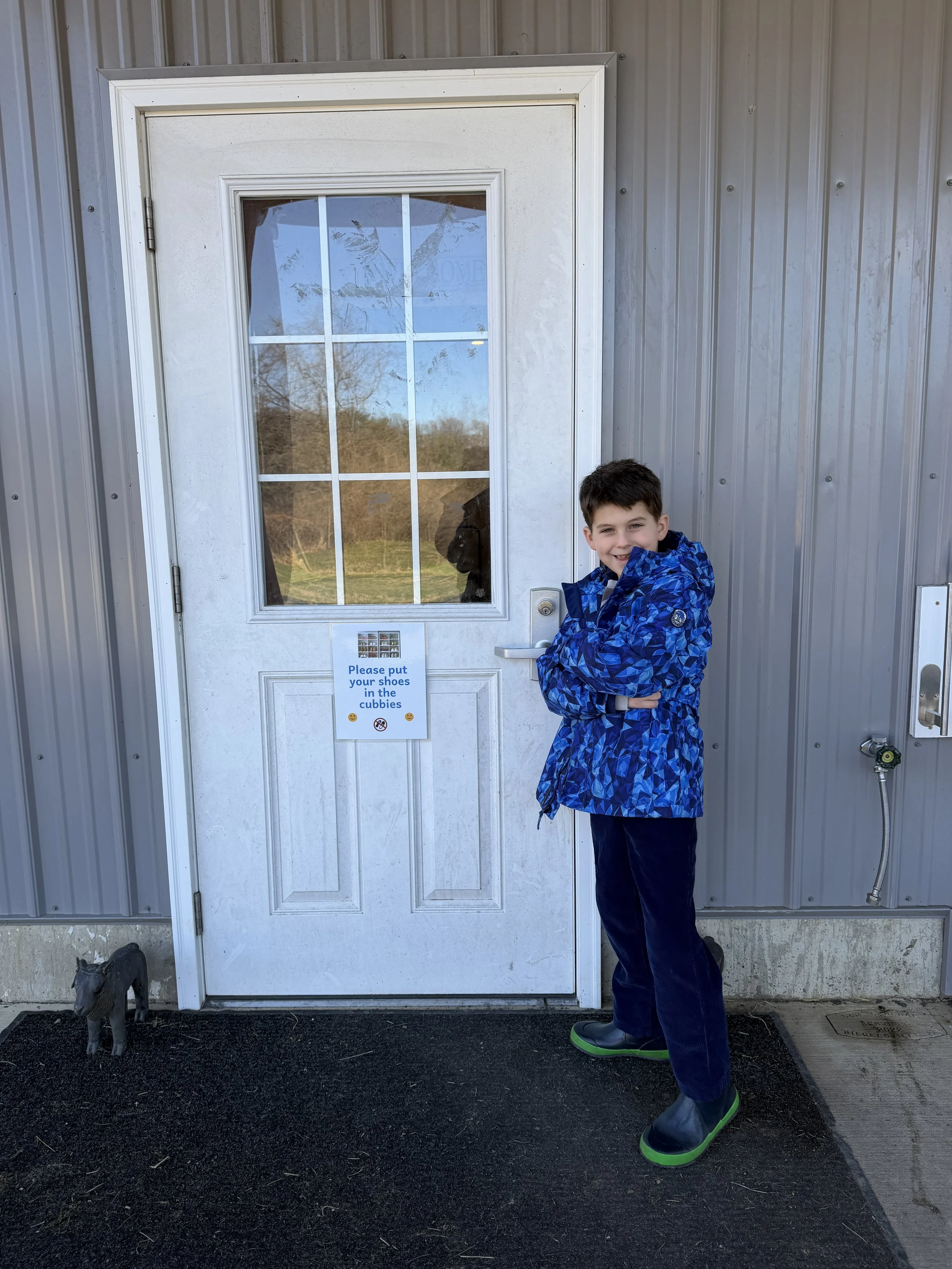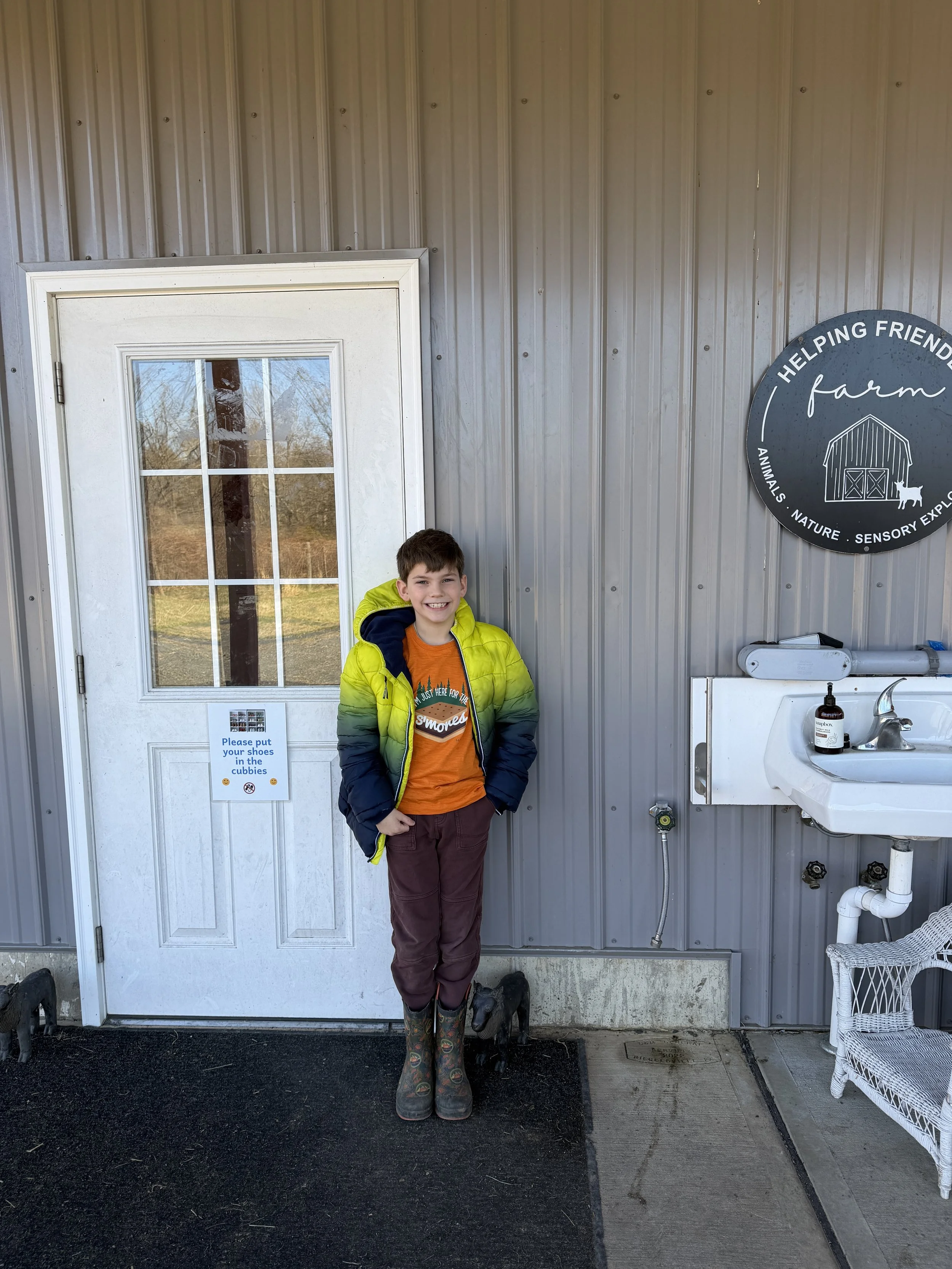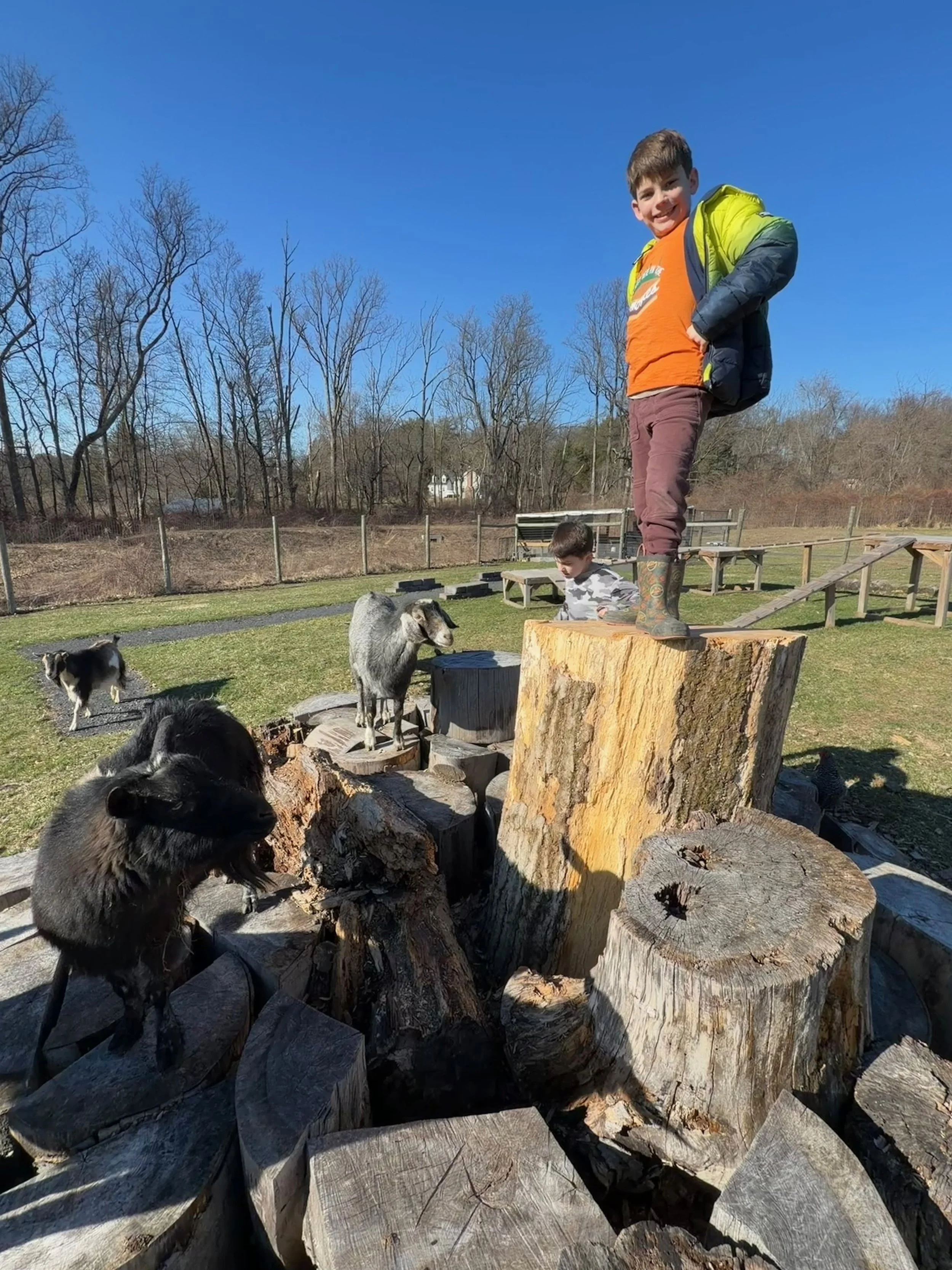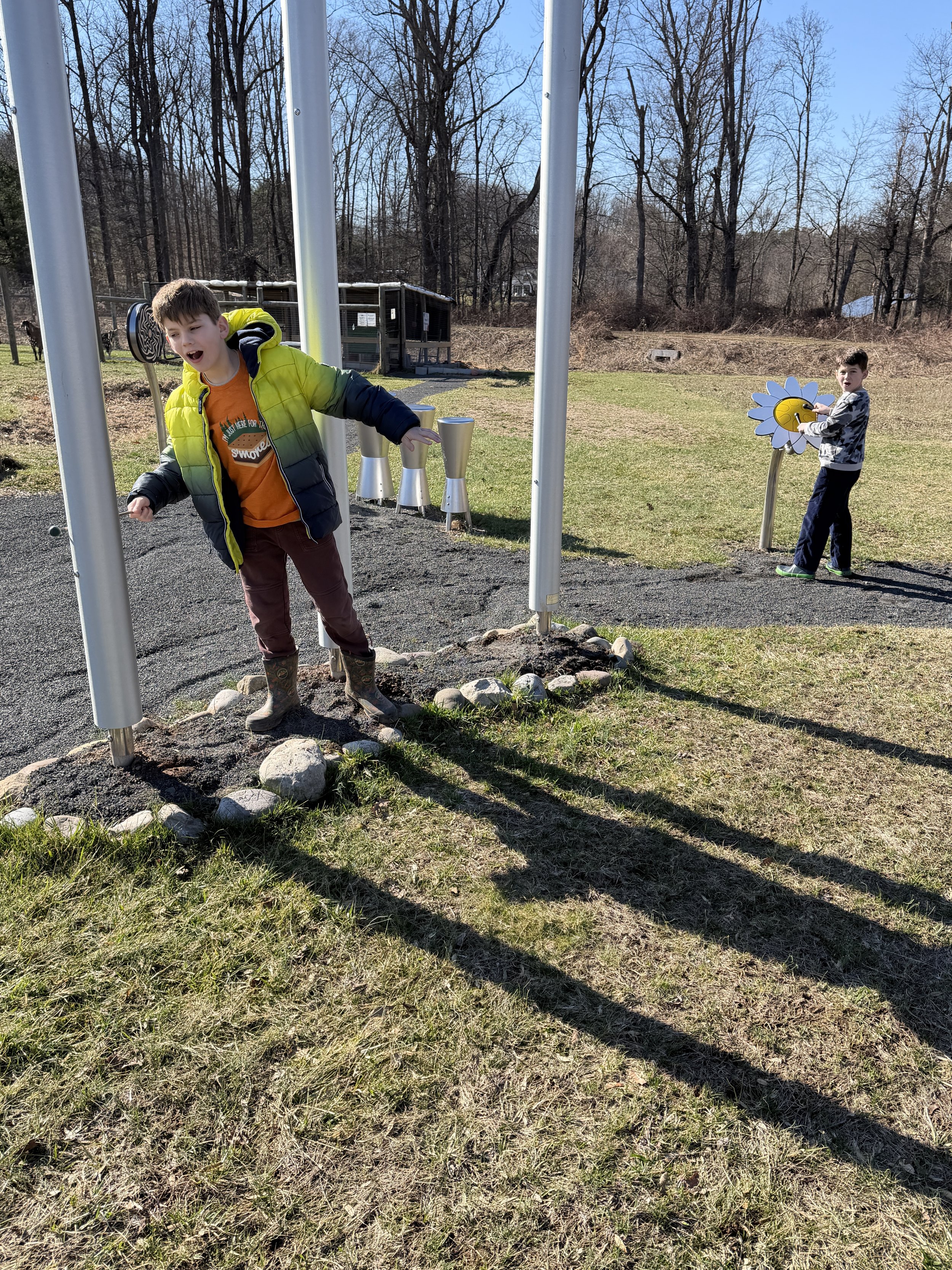 This is Rhys and Keats outside the sensory barn.