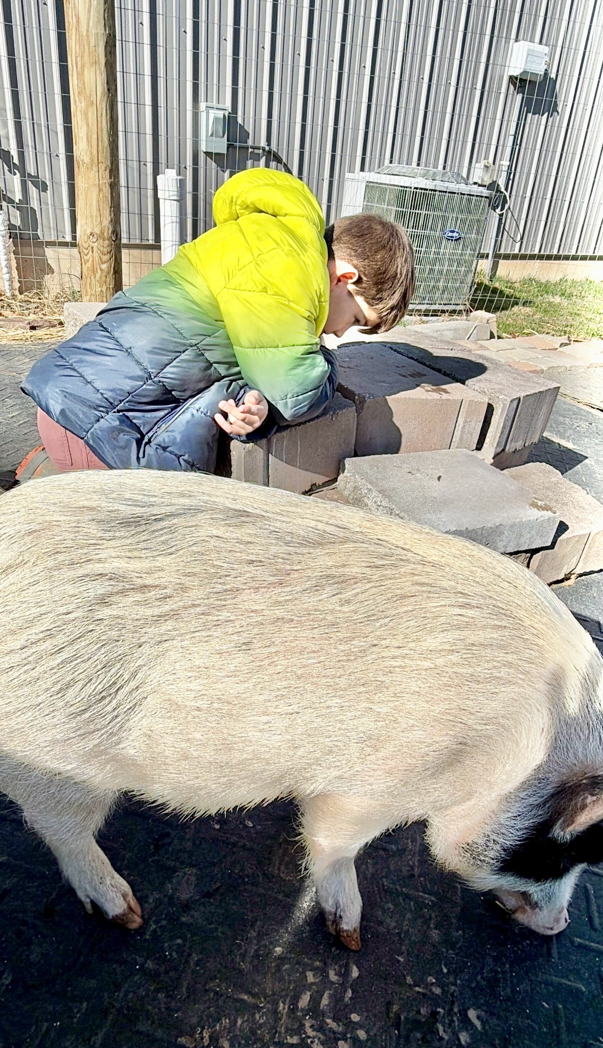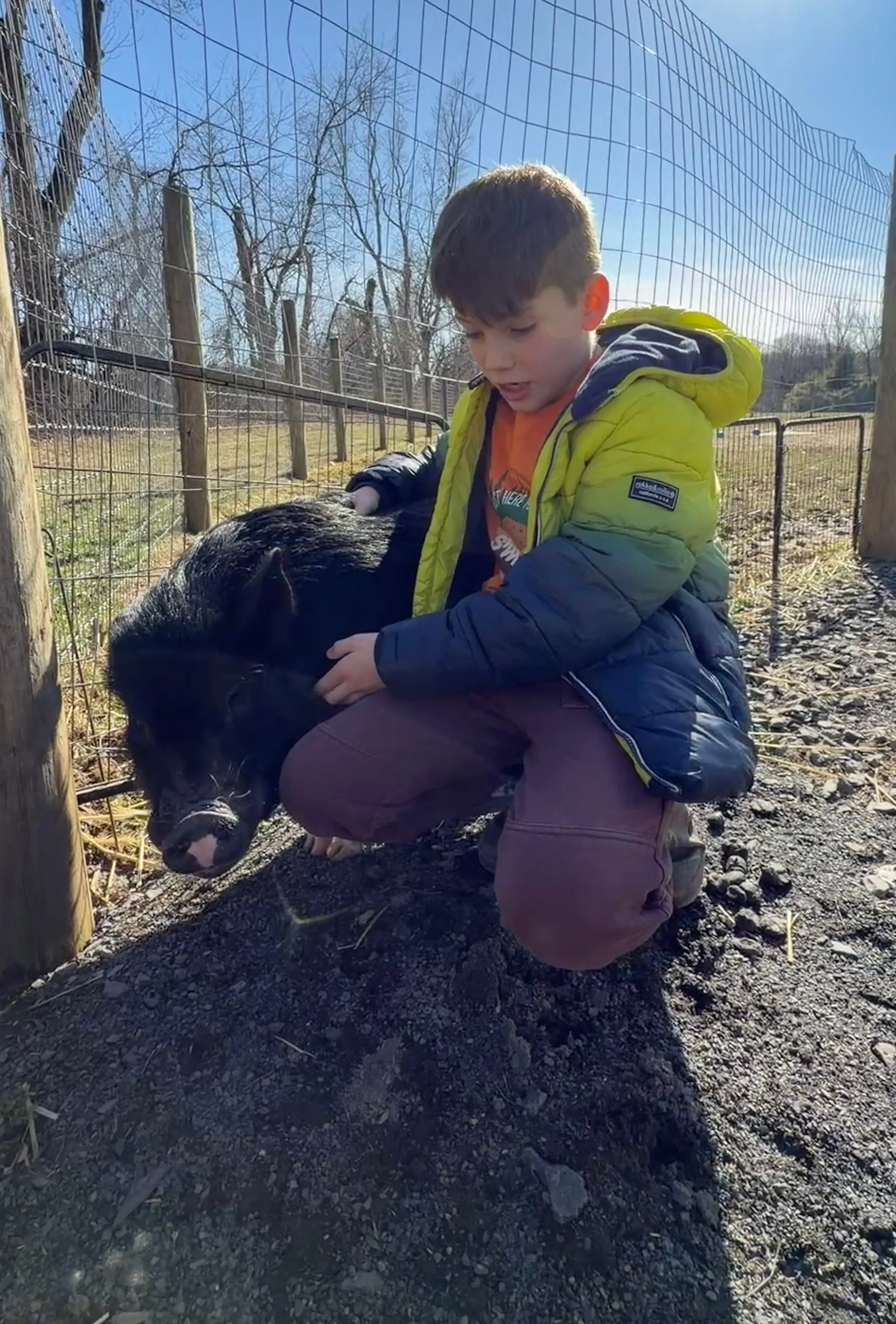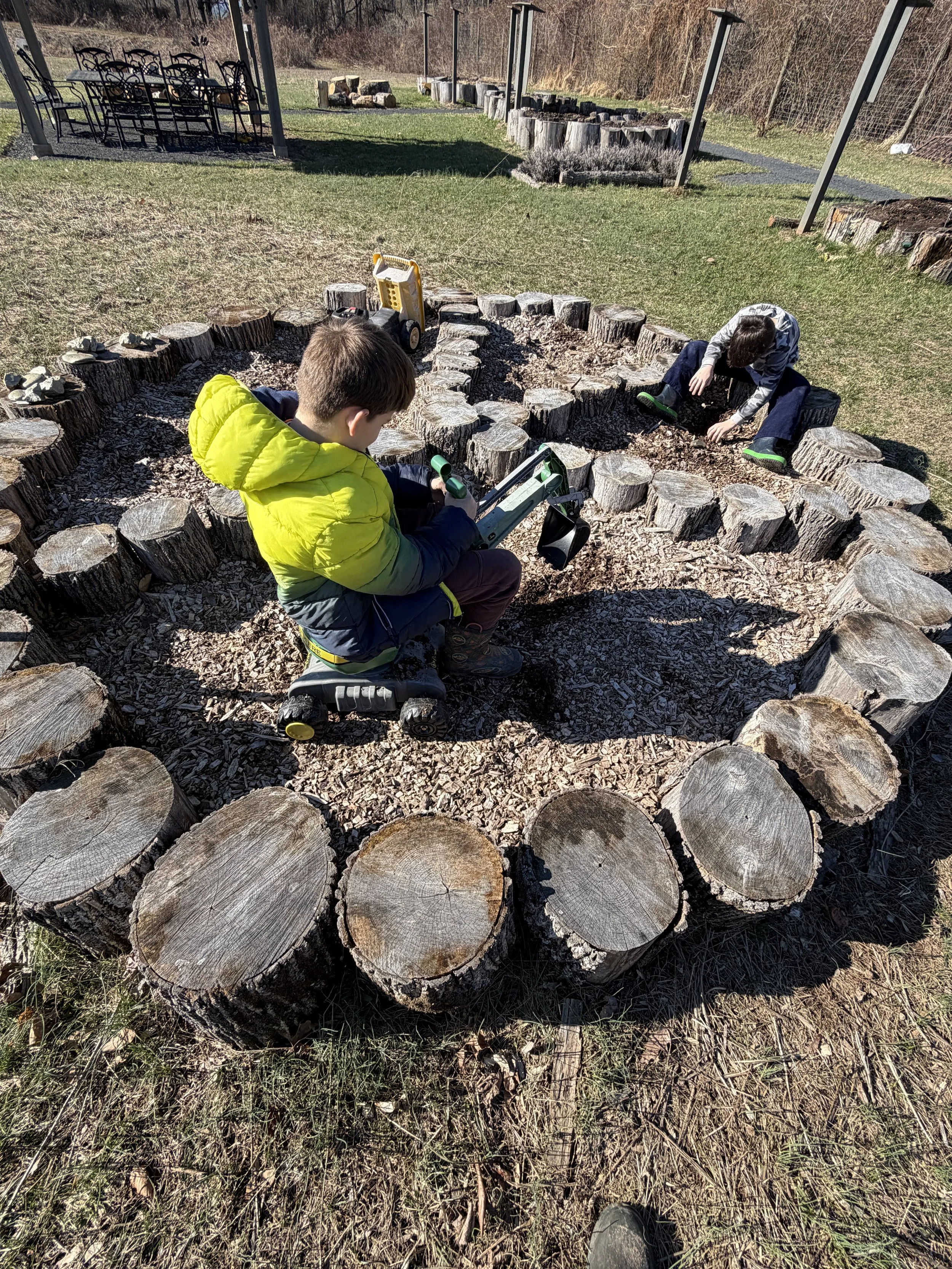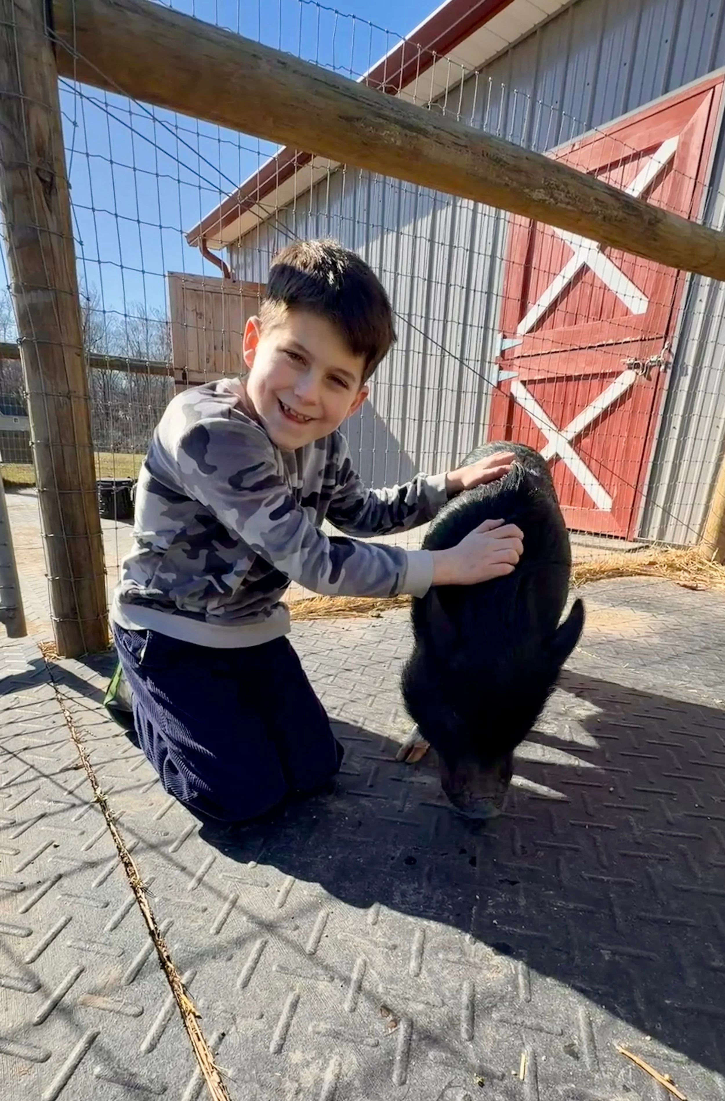This is Rhys and Keats outside the sensory barn.